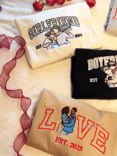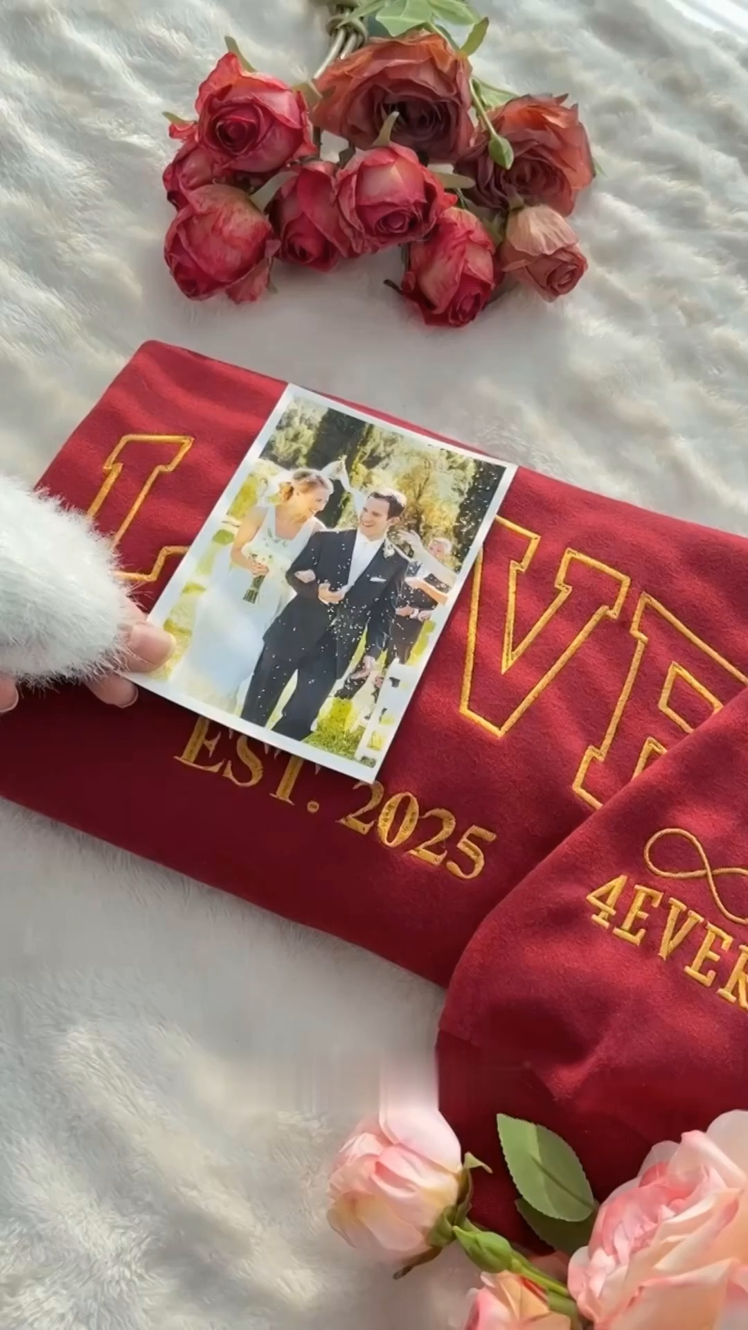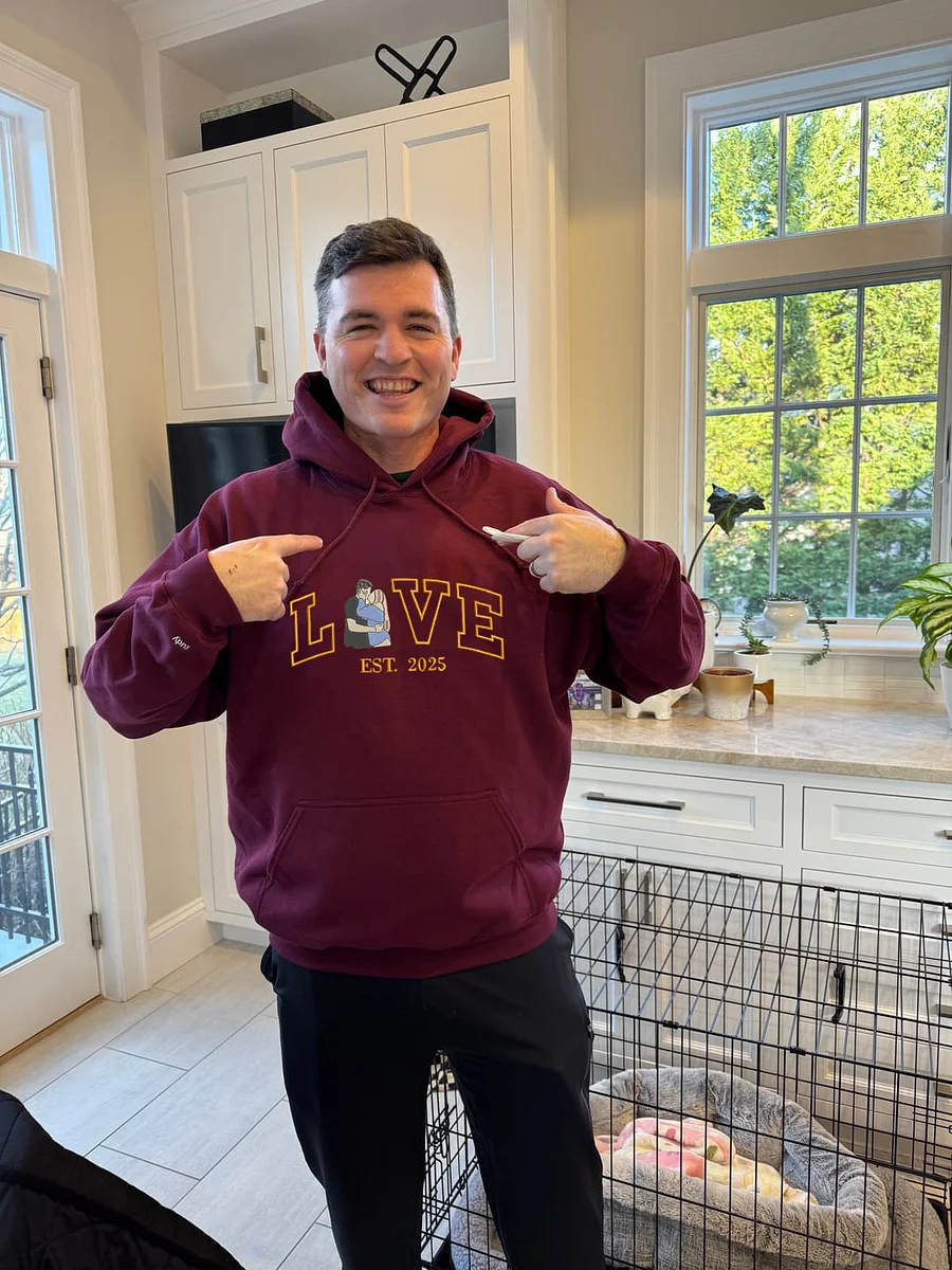 Personalized Embroidered Photo Couple LOVE Est Year Sweatshirt Hoodie Valentines Matching Couple Gift